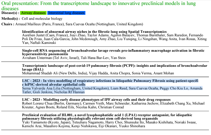 Congratulations to Analy Serna who was invited for an oral presentation at the ERS Congress 2023 in Milan.